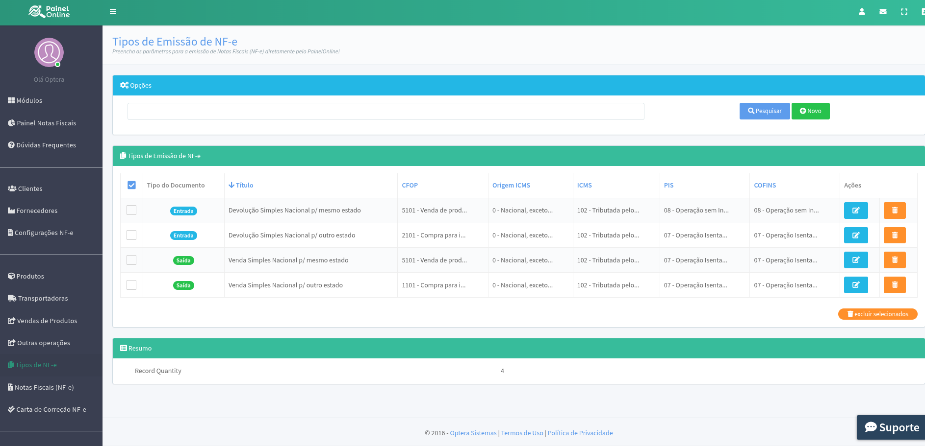 O antigo menu "Parâmetros de Notas Fiscais" foi totalmente reformulado e agora se chama Tipos de NF-e.