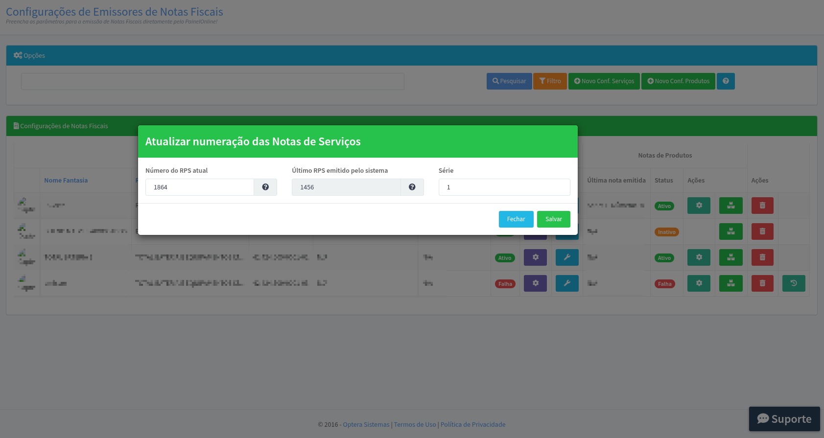 Na tela de configuração do emissor de NFS-e, localize o campo Número do RPS Atual.