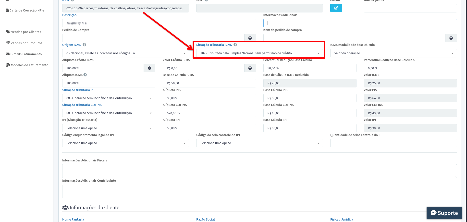1. Verifique o campo de ICMS