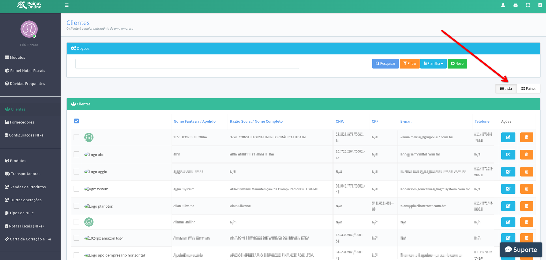 As opções são Lista e Painel, por padrão o PainelOnline sempre exibirá Painel, porém o PainelOnline irá salvar a última opção selecionada e ao entrar no menu novamente, você irá visualizar o mesmo com o tipo de visualização selecionado.