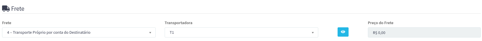 Na venda em que deseja emitir a NF-e, confira se o frete está marcado como “Transporte próprio por conta do destinatário”.